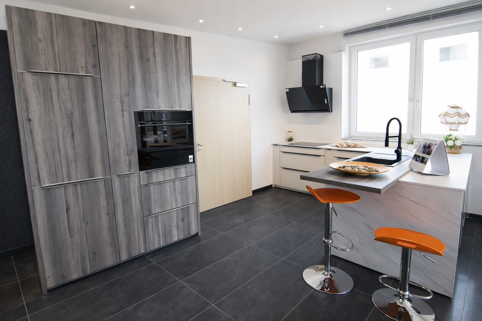 Ziel war es, eine offene, klare Küchenstruktur zu schaffen, die sowohl optisch überzeugt als auch den täglichen Anforderungen mühelos gerecht wird.